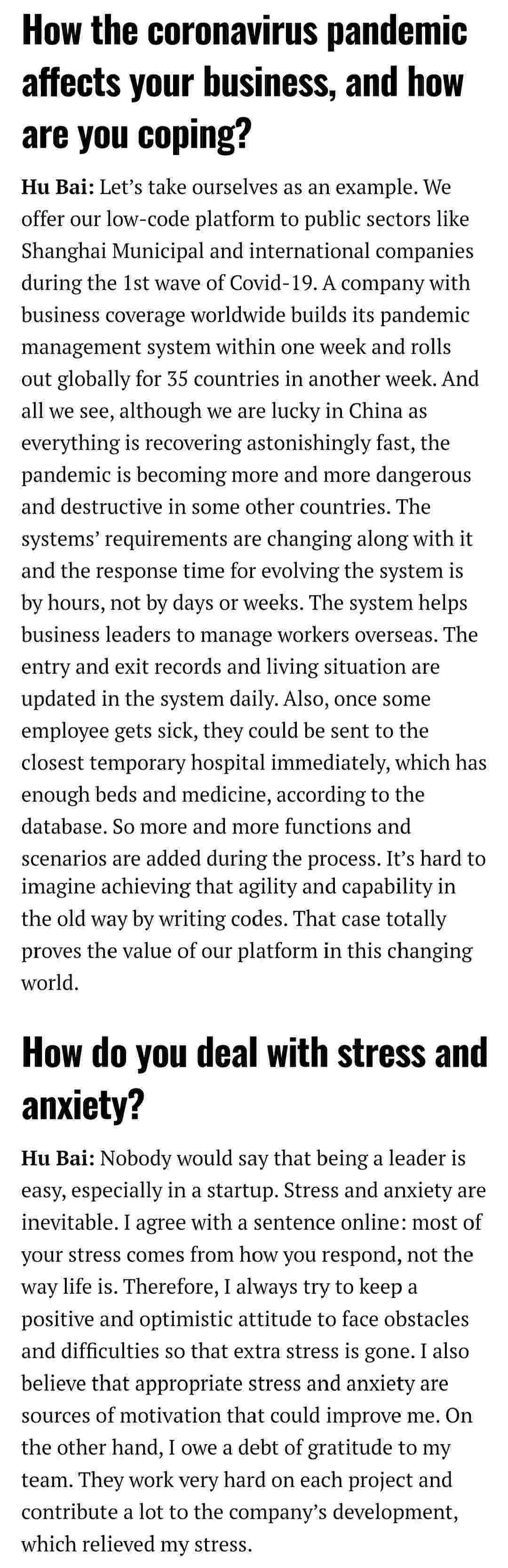 2021年年初,,,,,,,,,,,,,,爱湃斯科技CEO胡柏受邀接受法媒Startup.info的专访,,,,,,,,,与Startup info的读者分享了自己的创业经历、、、、、、、、、、、以及低代码平台OPPO钱包的创新之处。。。。。。。。。。。。。